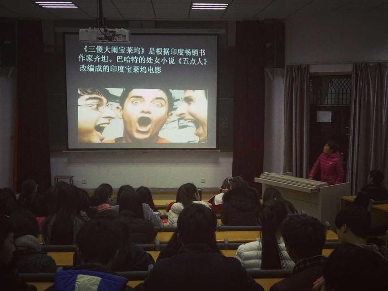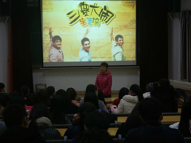 为提高同学们的综合素质和能力,并丰富其业余文化生活,基础部语文组举办了“经典影片赏析之《三傻大闹宝莱坞》”活动。此活动于11月17、18日晚在大屏教室进行,我校13、14级学生全部参加。