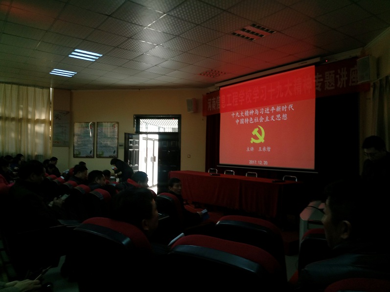 2017年12月20日下午,河南信息工程学校在学校道德讲堂堂举行“河南信息工程学校深入学习贯彻党的十九大精神”活动,邀请河南省社会科学院副院长王承哲同志作《十九大精神与习近平新时代中国特色社会主义思想》专题讲座。王承哲以习近平新时代中国特色社会主义思想为主线,从时代背景和历史贡献、核心要义和丰富内涵、理论特色和实践要求三个方面学习体会做了精彩报告。通过这次活动,党员同志进一步加深了对十九大精神和习近平新时代中国特色社会主义思想的认识。
