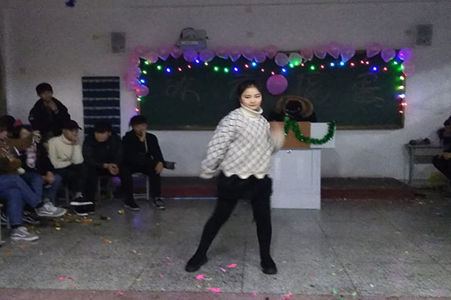 冬日的寒意丝毫没有影响同学们对元旦晚会的期盼和热情。各班学生利用课余时间将教室装扮得焕然一新,充满节日气息。在各班的举行的晚会中,同学们载歌载舞,喜气洋洋。演唱者深情而甜美的歌声,沁人心脾;舞蹈动感的旋律洋溢着青春的朝气;诗朗诵铿锵有力,感人肺腑;用心排练的小品令人不禁莞尔,“笑”果十足……