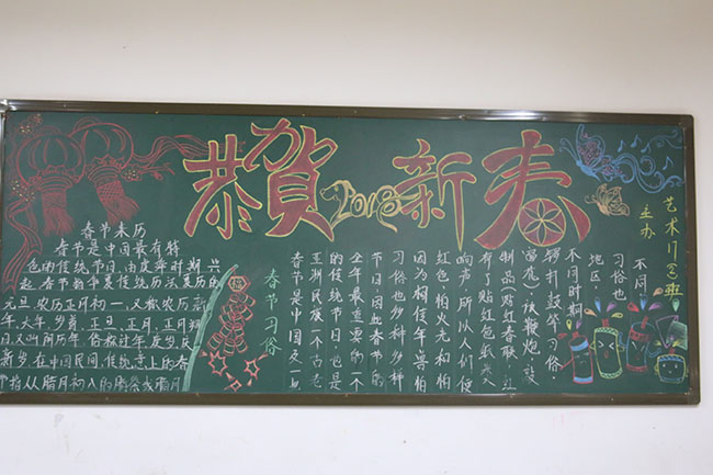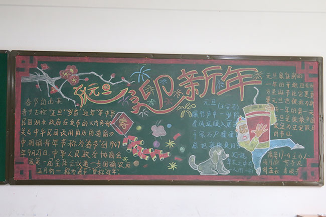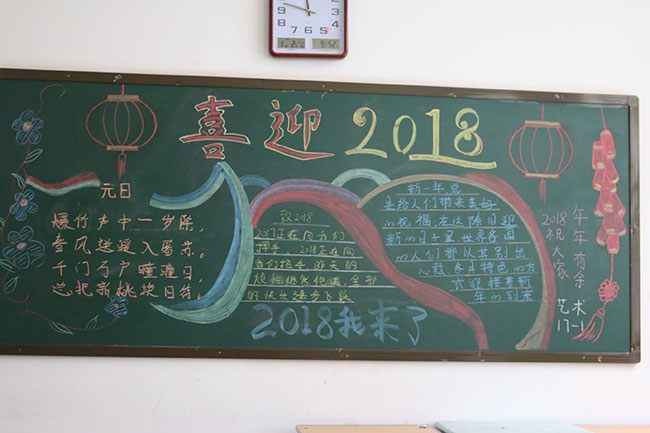 为丰富学生文化生活,促进校园精神文明建设,促进学生个性和特长的发展,也为了庆祝2018新年的到来,近日,我校举行了以“庆元旦、迎新年”为主题的黑板报比赛活动。