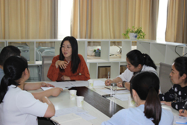 商务系主任尹顺丽、副主任崔磊磊,学前教育教研组长李莉,骨干教师贾宇灿、张梦卓参加,河南三臣教育集团牛海涛总经理和教学部刘英主任出席会议。