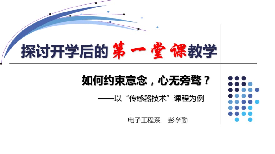 2019年2月24日,我校组织全体任课教师在道德讲堂举行“上好开学第一课”经验交流活动。电子工程系老师彭学勤作为老师代表以“传感器技术”课程为例就《如何约束意念,心无旁骛?》同大家进行经验交流。