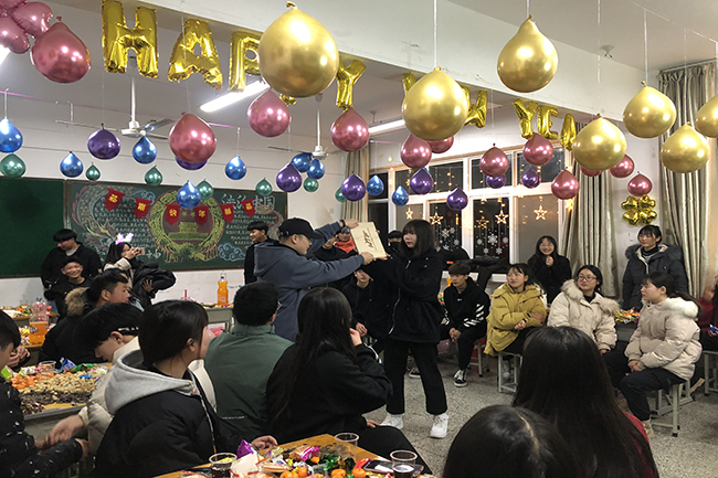 2019年12月29日、30日晚,我校2020年班级元旦晚会精彩上演,同学们在装饰一新的教室里载歌载舞、欢声笑语,师生携手共迎新年。