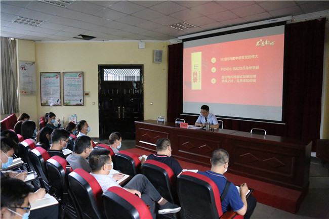 常书记首先带领大家回顾了中国共产党的发展历史,并以革命先烈的感人事迹感召全体党员:中国共产党正是有了远大理想和崇高追求,才会坚强有力,无坚不摧,无往不胜,才能经受一次次挫折而又一次次奋起。常书记提出,要从革命先辈的执着信仰和追求中汲取精神动力,补足精神之“钙”、筑牢信仰之“基”。在提到中国共产党脱贫攻坚成果时,常书记向大家分享了自己脱贫攻坚的经历,听者无不为之动容,深刻感受到作为一名党员,要始终秉承为人民服务作为党的宗旨,守好初心,做好本职工作。