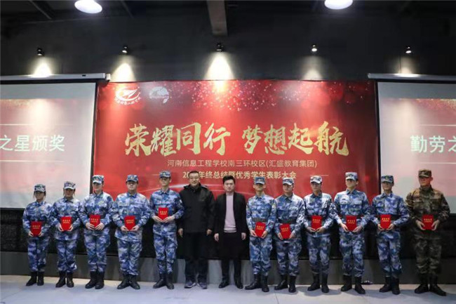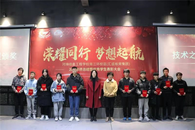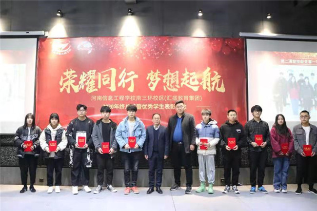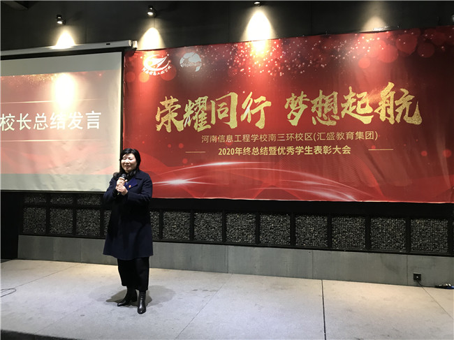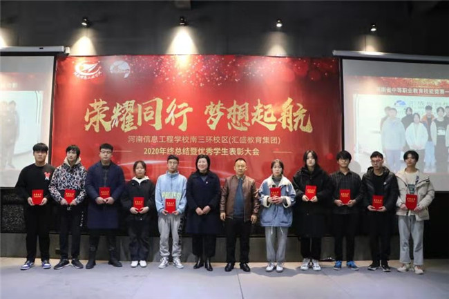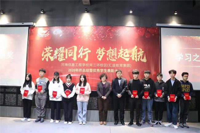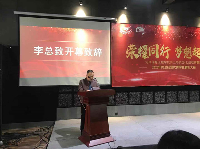 2020年12月26日上午,阳光明媚,晴空万里。河南信息工程学校南校区(汇盛教育集团)召开了主题为“荣耀同行、梦想起航”2020年年终总结暨优秀学生表彰大会。本部校长黄磊、副校长薛东亮、校企合作办公室、学生处、教务处及各系部的负责人参加了会议,汇盛教育集团董事长李洪江、执行校长武学光及南校区负责教学管理、学生管理、生活管理的副校长参加了会议。