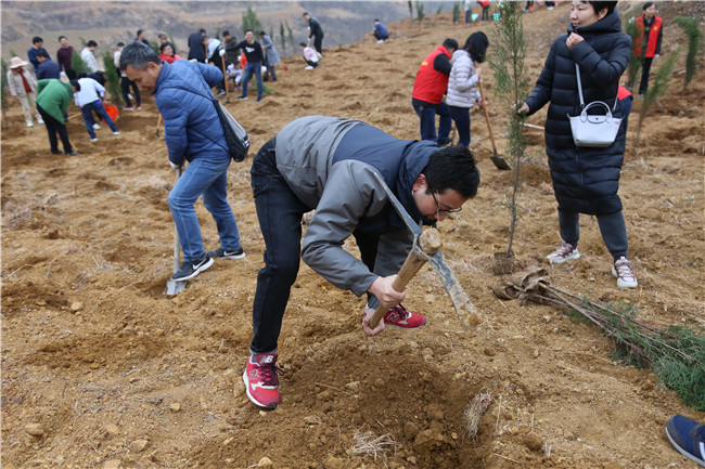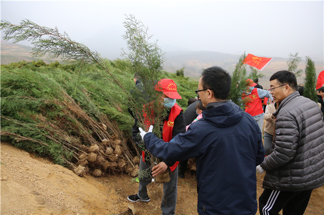 经过一个多小时的辛勤劳动,老师们共栽种树苗40余株,一排排小树迎风而立,为荒山添新绿。