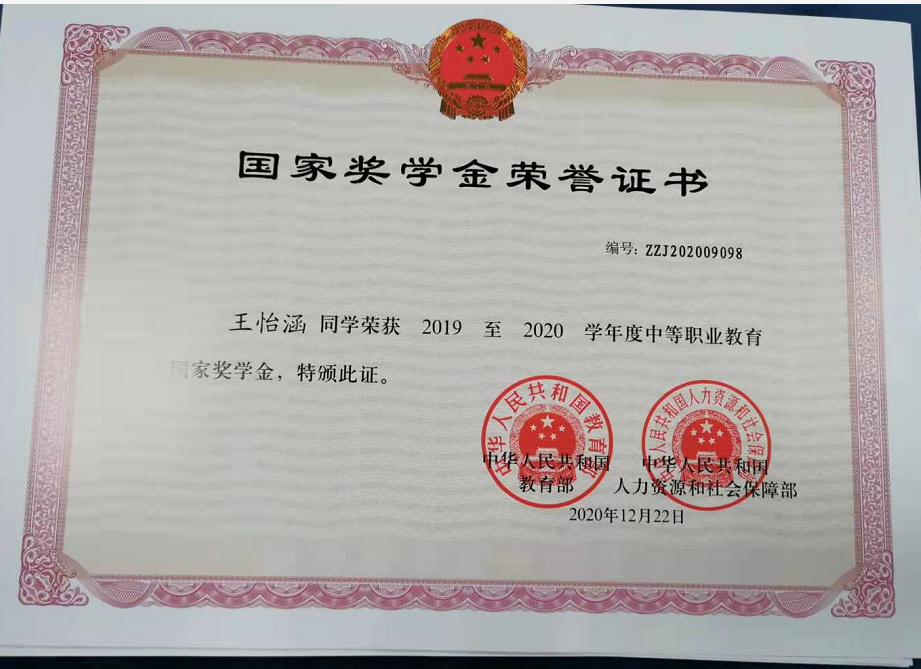 王怡涵同学在校两年来,获得的荣誉一串串:我校英语演讲比赛壹等奖、商务系五项技能大赛壹等奖、商务系语言技能大赛三等奖、河南省教育厅“说唱弹跳画”技能比赛贰等奖、河南省教育厅“英语情景剧”比赛贰等奖、我校“三好学生”。