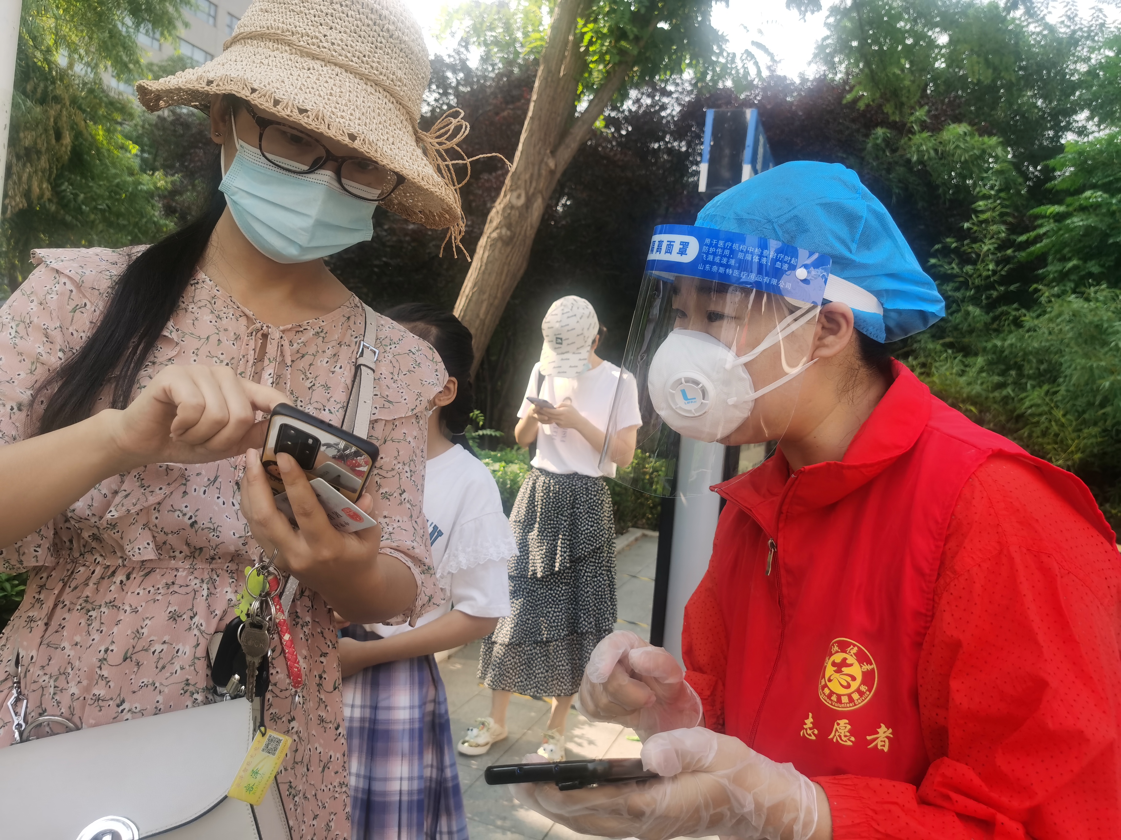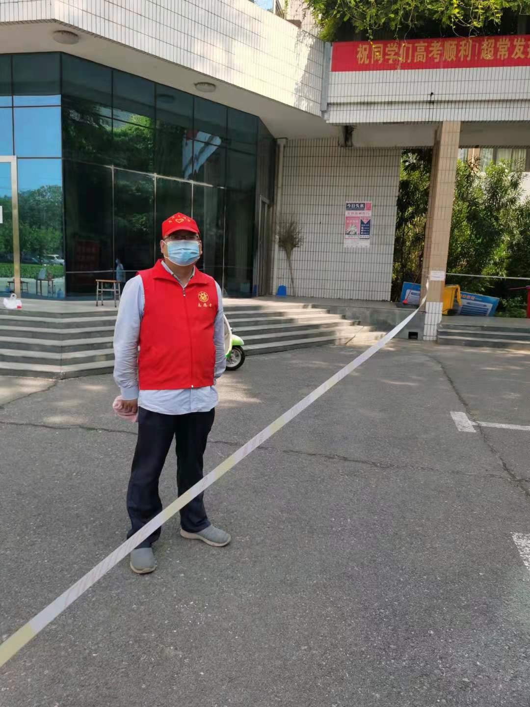 杨广宇老师近年来一直借调在河南省职业教育教研室做信息化工作,这次刚刚结束培训回到郑州,立即投身于核酸检测志愿服务,他站在检测的队伍旁边,提醒检测队伍保持距离,不要聚集,又不时地帮助年龄大、身体不便的人士到进入绿色通道进行检测,亲切的话语、贴心的帮助让受栓检群众如沐春风。