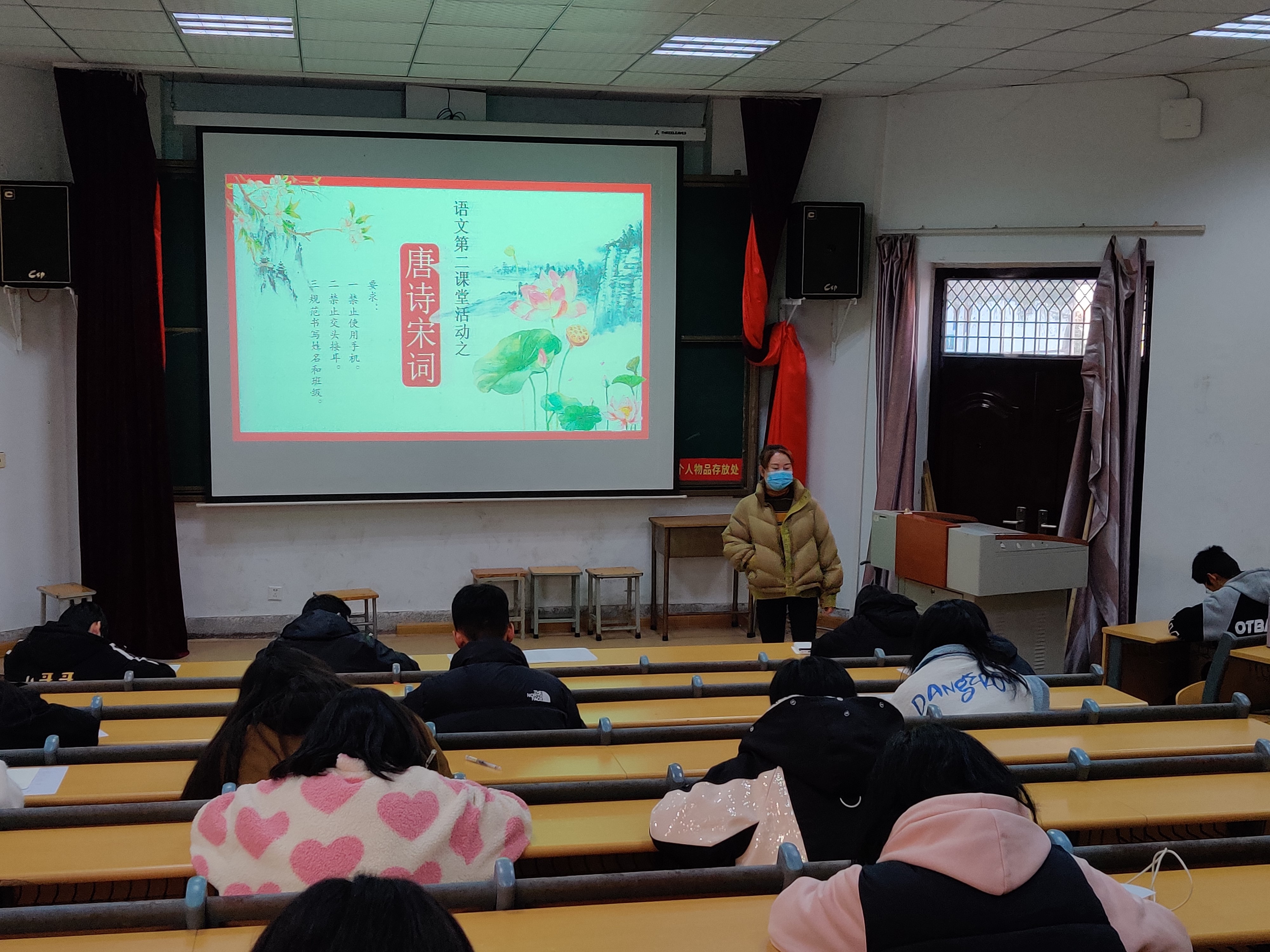 为弘扬传统文化,感悟诗词之美,12月7日16时30分,基础部语文第二课堂活动——唐诗宋词比赛在大屏一、大屏二、大屏三教室举办,来自校本部的140名同学共同开启诗词的寻美之旅。
