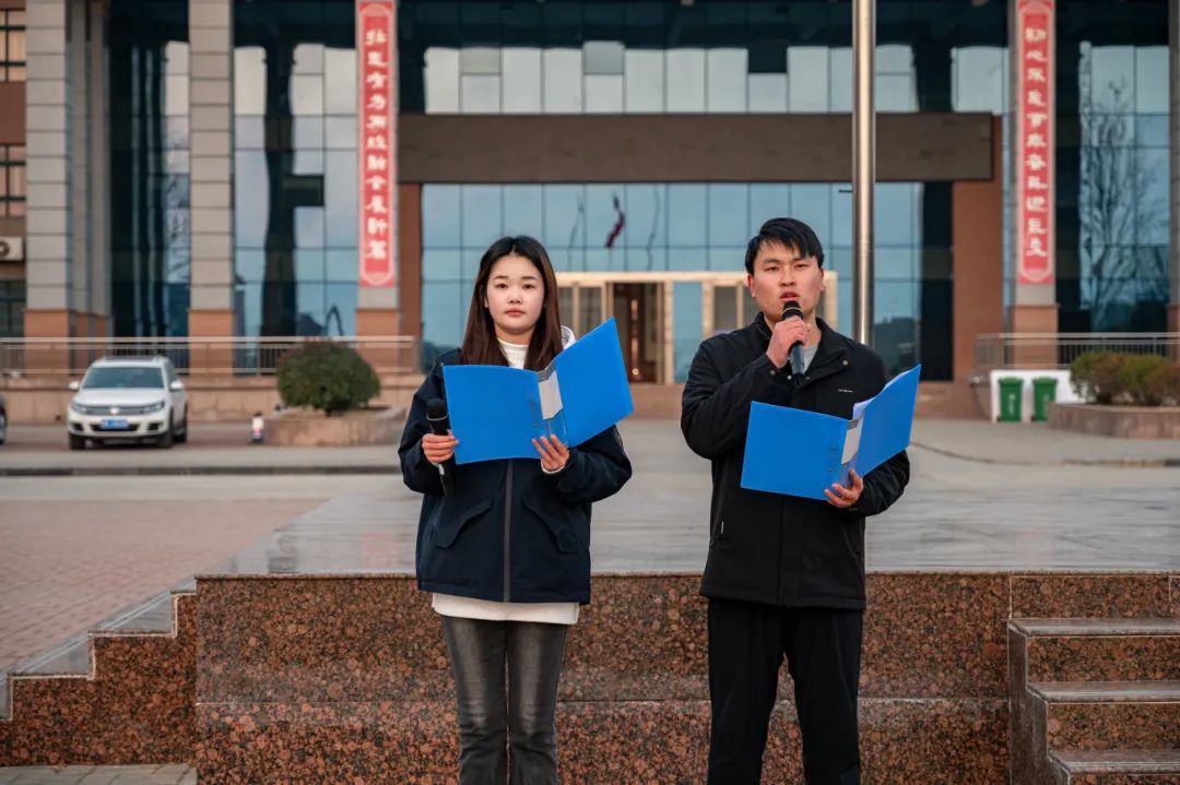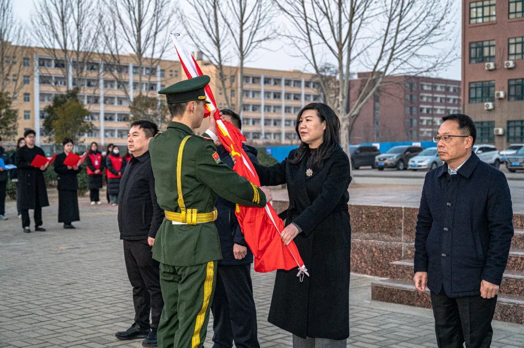 春意盎然,扬帆起航。2月24日清晨,我校2025年春季学期首期“国旗下的思政课”暨开学第一课主题升国旗仪式在国旗广场庄严举行。校党委书记黄磊、校长薛东亮、纪委书记王晓辉、副校长门雅范、副校长季峰出席仪式,相关部门负责人、辅导员代表、信息工程系全体学生及各系部学生代表参加了仪式。