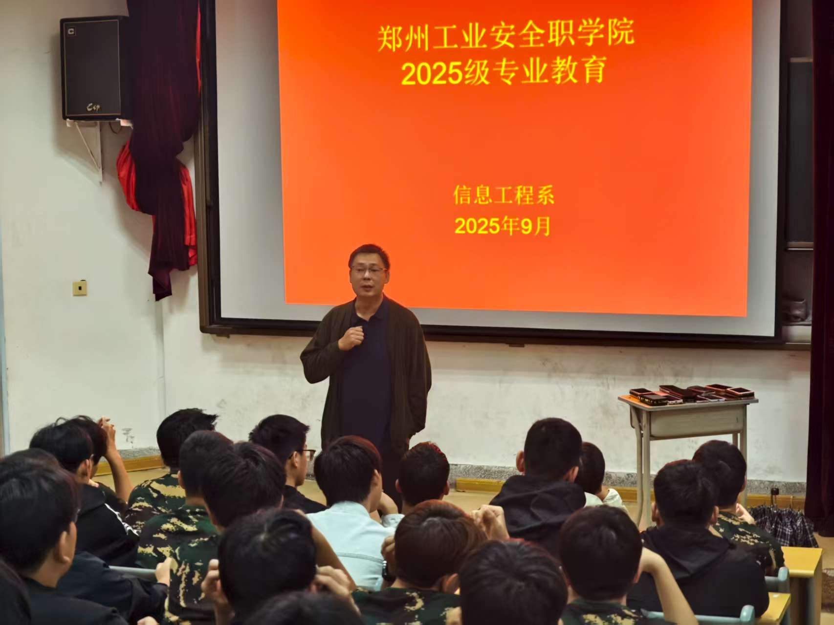 2025年9月4日,本校信息工程系金水校区针对25级学生开展的专业教育活动于八角楼举办。此次教育活动由胡祎主任主持,郭蕊副主任、电子专业教研组长马琳、物联网专业教研组长郭子川,以及电子信息工程技术(五年制)、物联网技术应用(中职)专业25级学生共同参与。