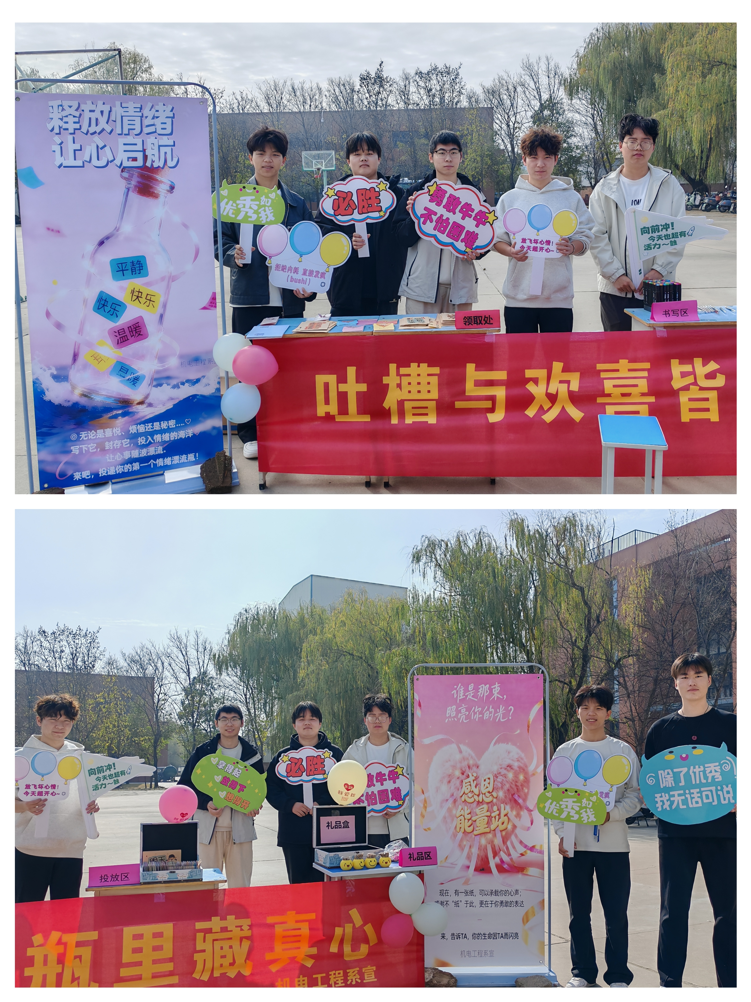为深入推进学生心理健康教育工作,创新心理育人形式,机电工程系于11月11日成功举办了“情绪漂流瓶”与“感恩能量站”双主题融合心理健康活动。后续精彩正接续登场,以多元形式为学子心灵注入温暖能量。