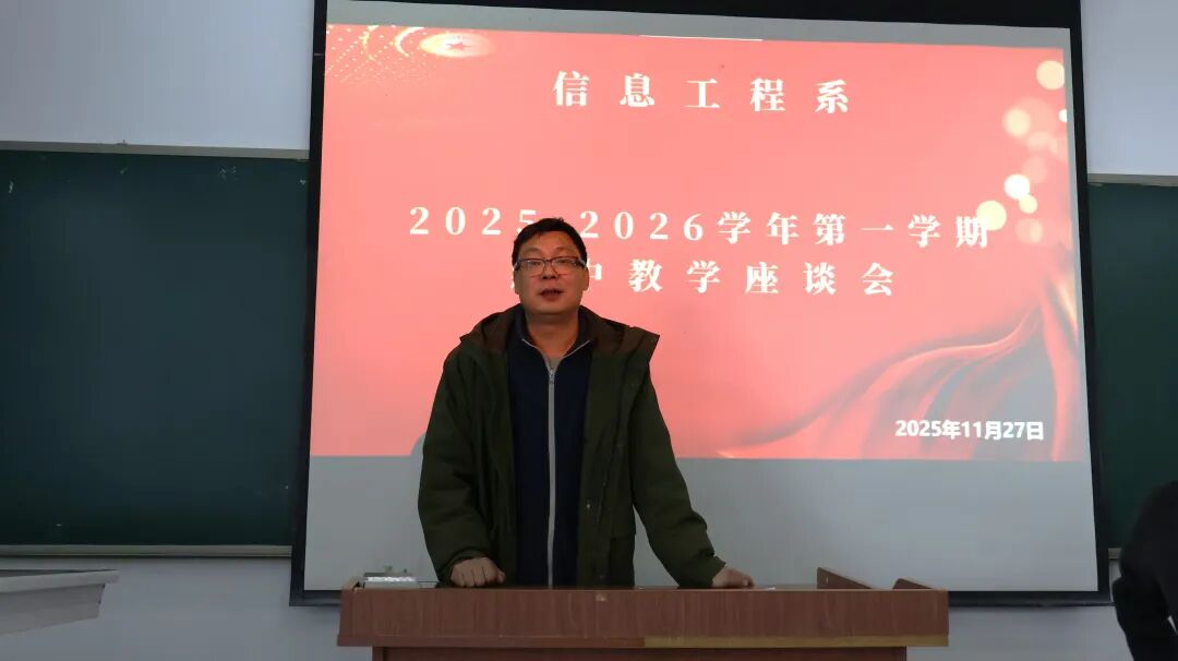为精准把握学生需求、破解学生管理工作困境、优化育人管理体系,11 月 27 日 13:40,信息工程系在 1313 教室召开本学期学生座谈会。系党支部书记朱春香、系主任胡祎、副主任郭蕊、全体教师及各年级学生代表参会,以面对面交流搭建沟通桥梁。