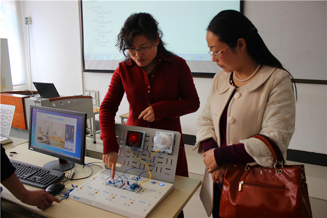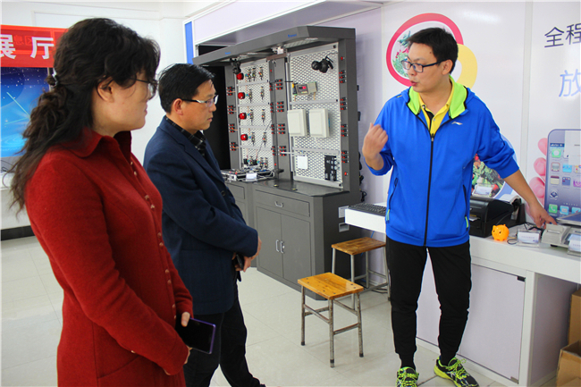 2016年3月31日,邓州市职教中心袁王杰校长一行莅临我校参观交流。张立校长介绍了我校发展现状,史娟芬主任介绍了我校电子工程系基本情况,双方就电子技术应用专业物联网方向的发展前景进行了探讨。随后,袁王杰校长一行参观了电子工程系物联网实训室和体验馆。