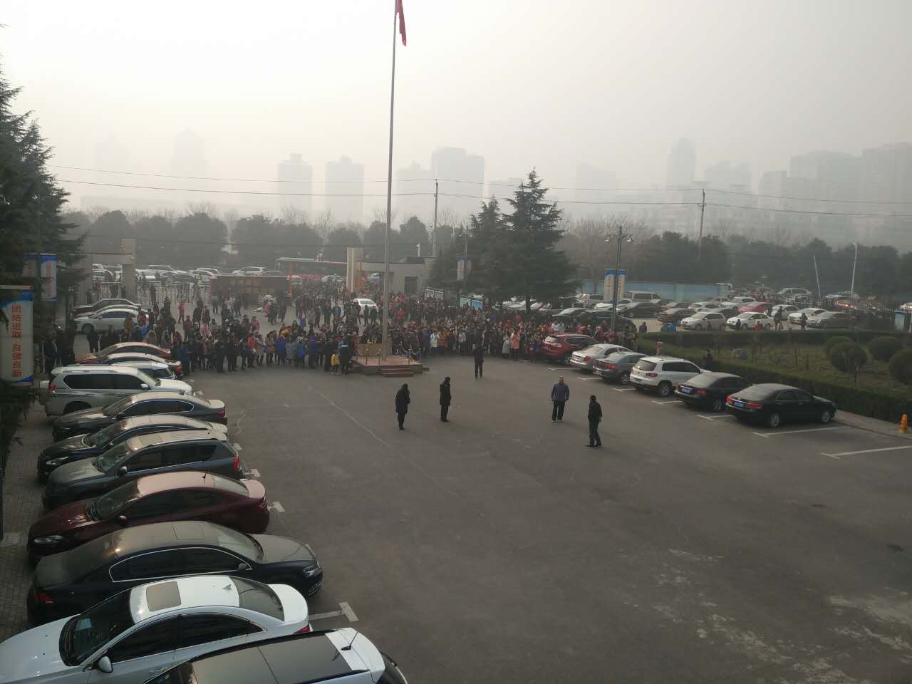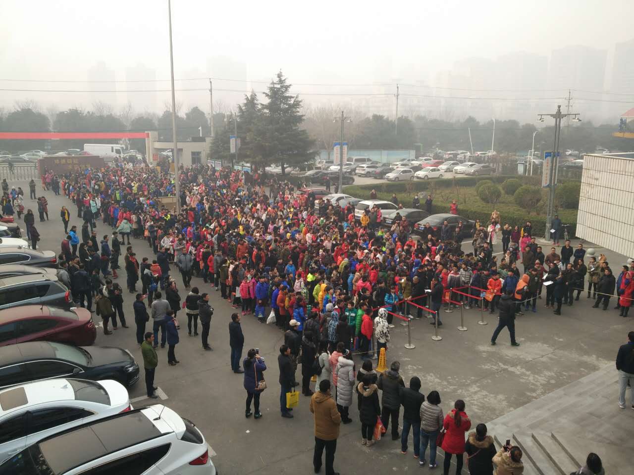 在警戒线外等候的家长们,加油。