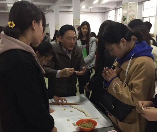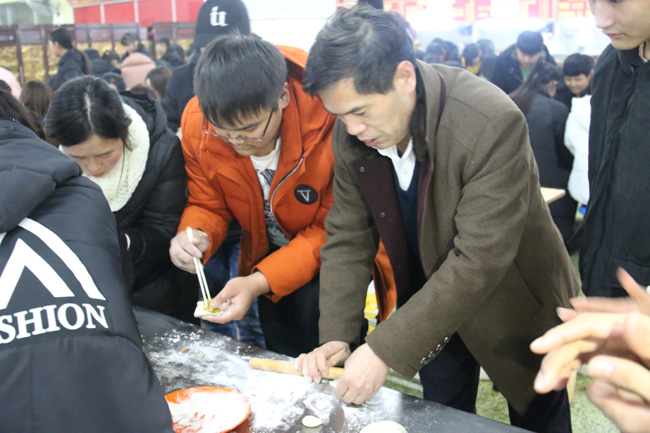 活动开始,张凯处长为大家讲解了冬至的习俗、来历及饺子的寓意,象征着亲情和包容。同学们个个兴致昂扬,摩拳擦掌,迫不急待地要投入比赛,开赛的哨声一响,大家纷纷跑到自己的“阵地”,他们有的和面,有的擀皮,有的包馅,分工明确、热情高涨,寇校长和宋副校长还亲自为同学们演示了擀饺子皮和包饺子,他们娴熟的技巧和精湛的展示赢得了同学们阵阵掌声和喝彩,把这次活动推向了高潮。为了表达校领导的关心,也为了保障同学们都能吃上饺子,学校为每个同学发了餐券,凭券就可以在餐厅领一碗热腾腾的饺子。