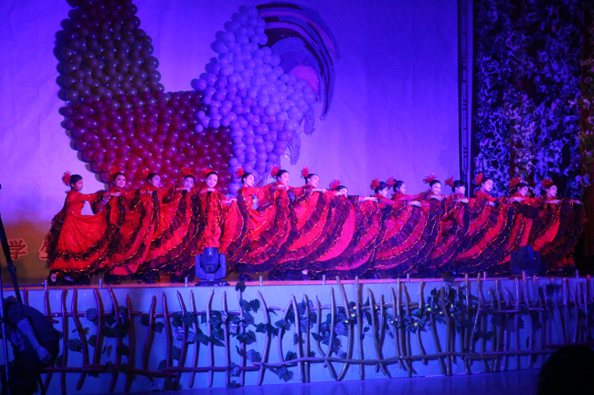 晚会在我校舞蹈社团的《节日欢歌》中拉开帷幕,欢快的乐曲、优美的舞姿、奢华的服装、变化多端的灯光引起现场观众的阵阵掌声。开场舞后,我校演员和辅导老师一同观摩学习了其他节目,并在晚会结束后和该校领导、演职人员一同合影留念。