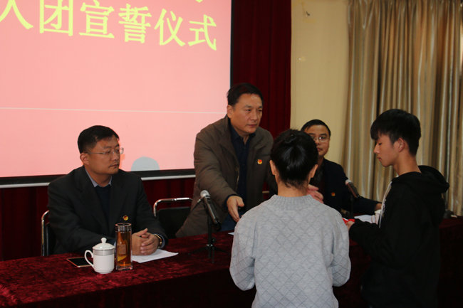 2016年12月27日下午,我校在道德讲堂隆重举行新团员入团宣誓仪式,共有88名同学光荣加入中国共产主义青年团。校党委书记郭瑞山出席仪式并讲话,副校长宋廷楷、团委书记冀红海以及部分班主任参加,仪式由学生处(团委)处长张凯主持。