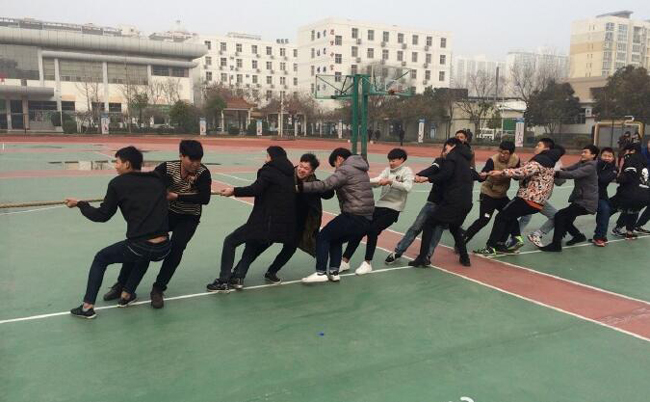 为了激发同学们锻炼健康身体的兴趣,增强团体合作精神,展现学生积极向上的精神风貌,丰富校园文化生活,2017年1月12号中午,校学生处(团委)在校运动场举行拔河比赛。男子组共有42队参赛报名,女子组有14个队参赛报名,比赛通过抽签方式决定对战队。