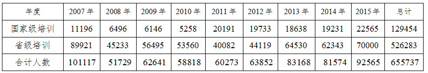 通过“素提计划”,65万名职业院校教师参加国家级培训和省级培训,培训人数占到全国职业院校专任教师总数的50.8%,2700名教师赴德国、奥地利、澳大利亚、美国等职业教育发达国家进修,完成专业课教师轮训,培训期间近50%的教师取得高一级职业资格证书或专业技术资格证书,相比2010年中职“双师型”教师数量增加26.2%。