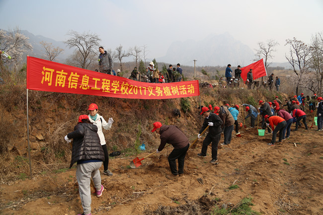 阳春三月,草木秀润。为响应"两会"号召,打赢“蓝天保卫战”,贯彻科学发展观和生态文明要求,增强全校教职工“植绿”“护绿”意识,3月18日,我校45名义务植树志愿者在寇守峰校长、郭瑞山书记带领下,来到郑州市义务植树基地(登封市石道乡陈家门村),开展义务植树活动。