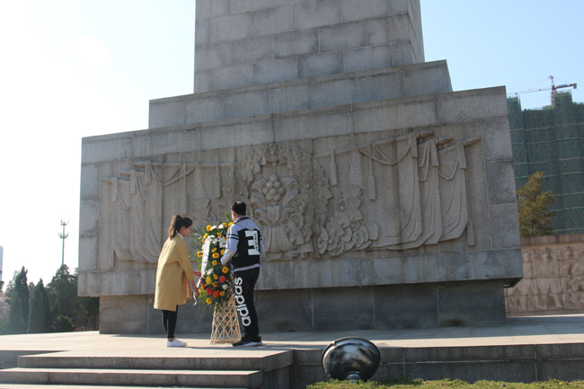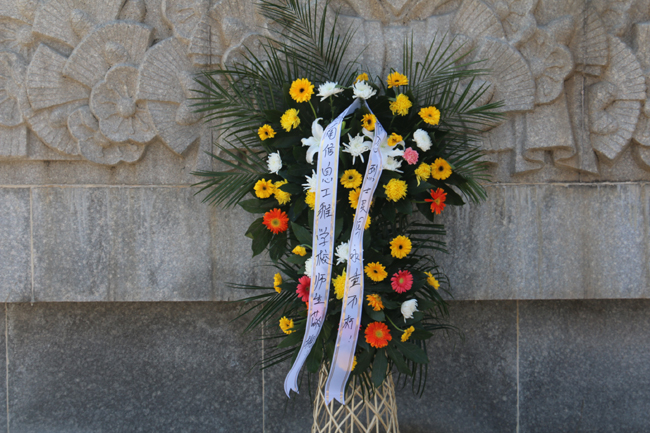 郑州市烈士陵园气氛庄严肃穆,同学们上午9:00到烈士陵园英烈纪念碑前静静肃立。首先由学生代表向烈士纪念碑敬献花篮,之后全体学生向纪念碑默哀一分钟,并向纪念碑三鞠躬,表达对烈士的无限哀思。
