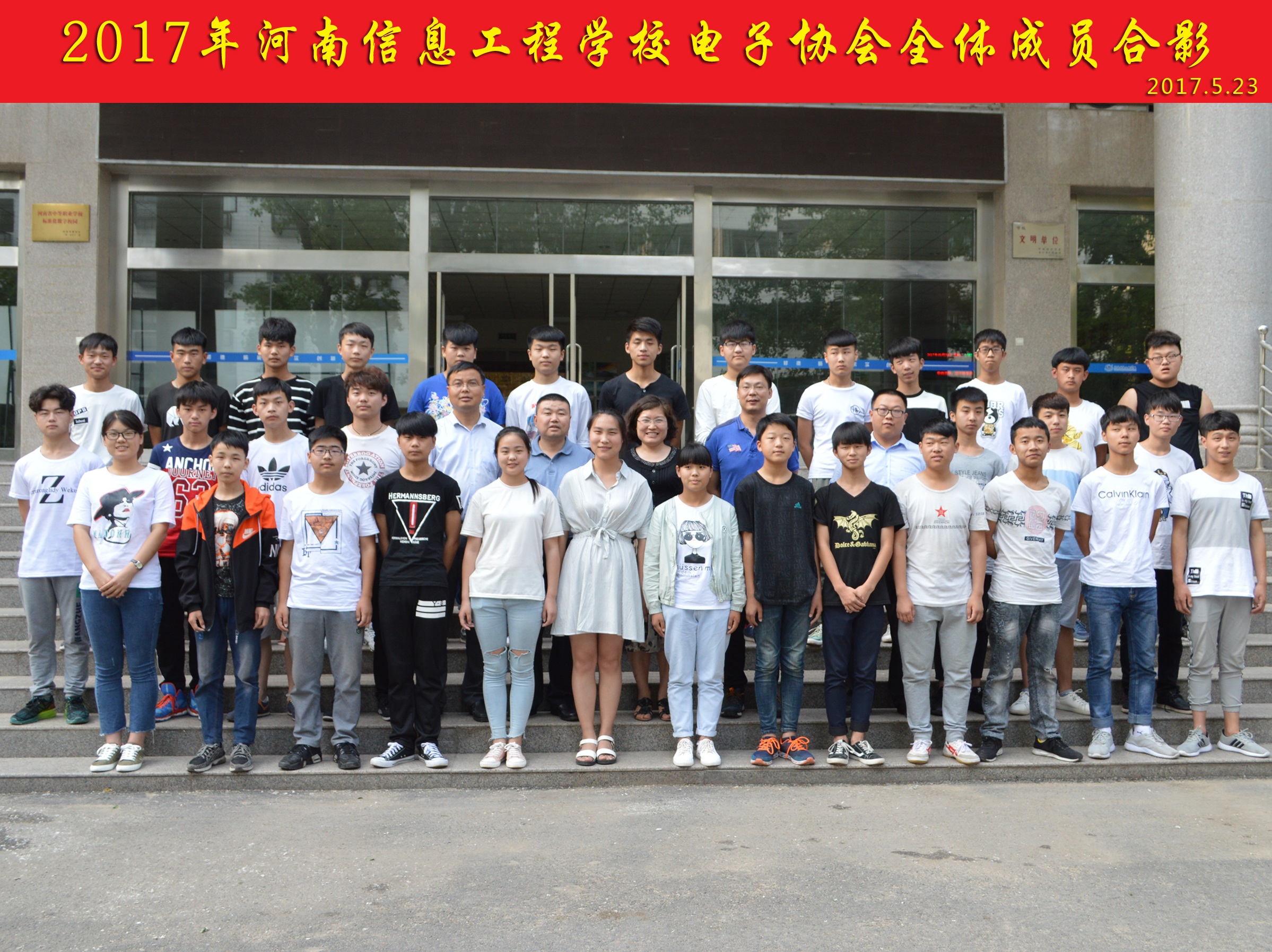 2017年5月23日,我校电子协会全体成员举行合影活动,电子工程系与学生处(团委)主要领导、全体协会会员参加本次活动。本次活动的目的是欢送15届成员以及纪念15、16届协会工作交接完成。