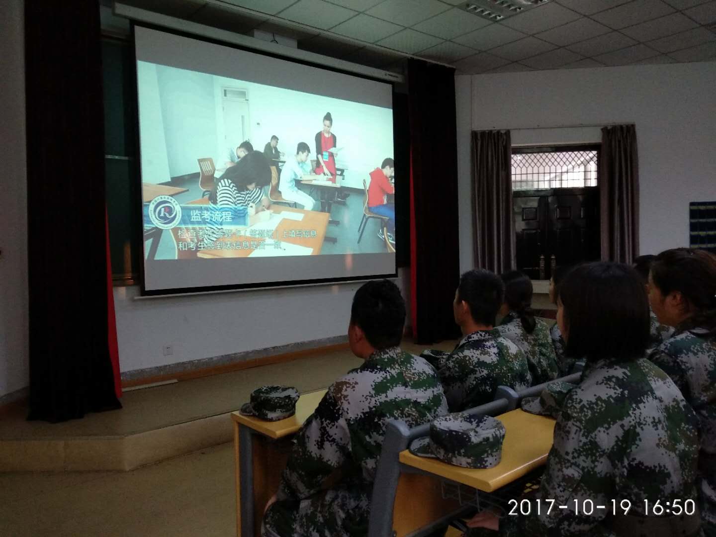 2017年暑假,我们学校决定在全体学生中挑取品学兼优的学生成立学生教官队伍,从暑假两个月的时间开始进行封闭全军事化管理一直到现在,学生教官队伍锻炼的效果良好,要求严格,服装统一,展现出了良好的精神风貌,我们中心在这支学生教官队伍的基础上,再次进行选拔优秀人员补充到学校助考队伍,增强我校考试考务的实力。