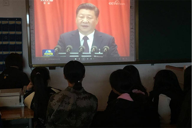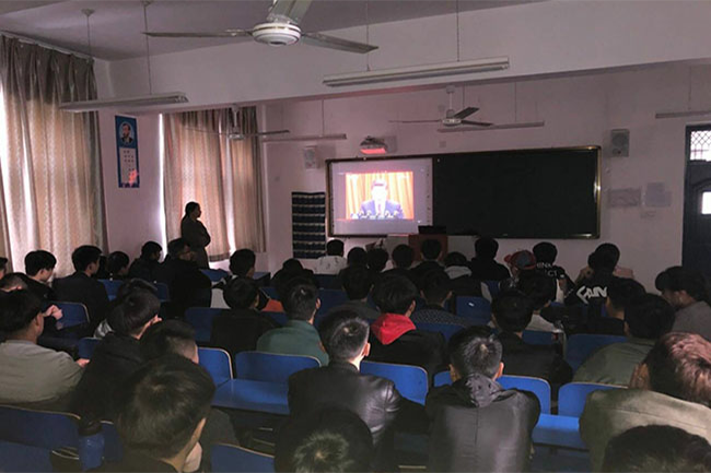 2017年10月24日下午团课时间,学生处(团委)组织全校学生观看中国共产党第十九次全国代表大会开幕会,认真聆听习近平同志代表第十八届中央委员会所作的工作报告。