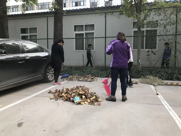 11月8日下午四点半,我系教师在教学楼前的卫生划片区域集合,各位老师在领完打扫工具后,开始对划片区域的枯枝落叶、塑料包装、等垃圾进行了拉网式的清理。