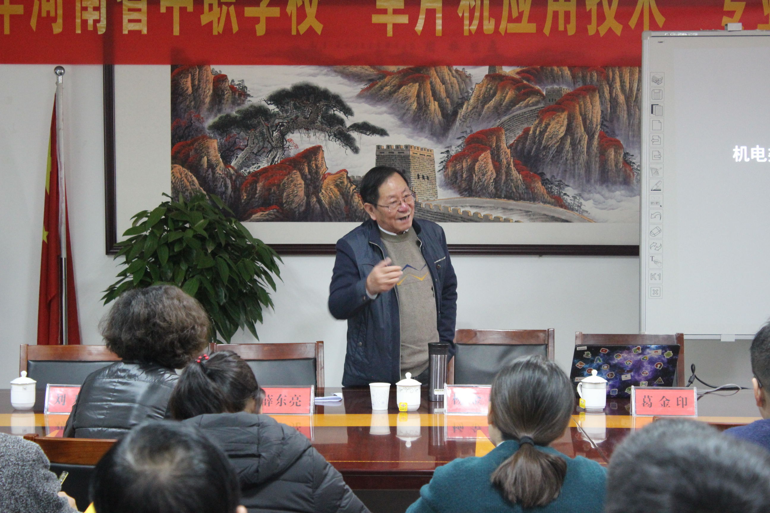 2017年11月11日-12日,河南省中等职业教育电子技术应用专业名师工作室邀请了河南省职业技术教育教学研究室教育部杨金栓主任、全国知名教育专家葛金印、肖海红和亚龙企业工程师张雅在我校作了关于单片机应用技术的专题讲座,本校和全省兄弟学校教师共80余人次参加了此次培训。