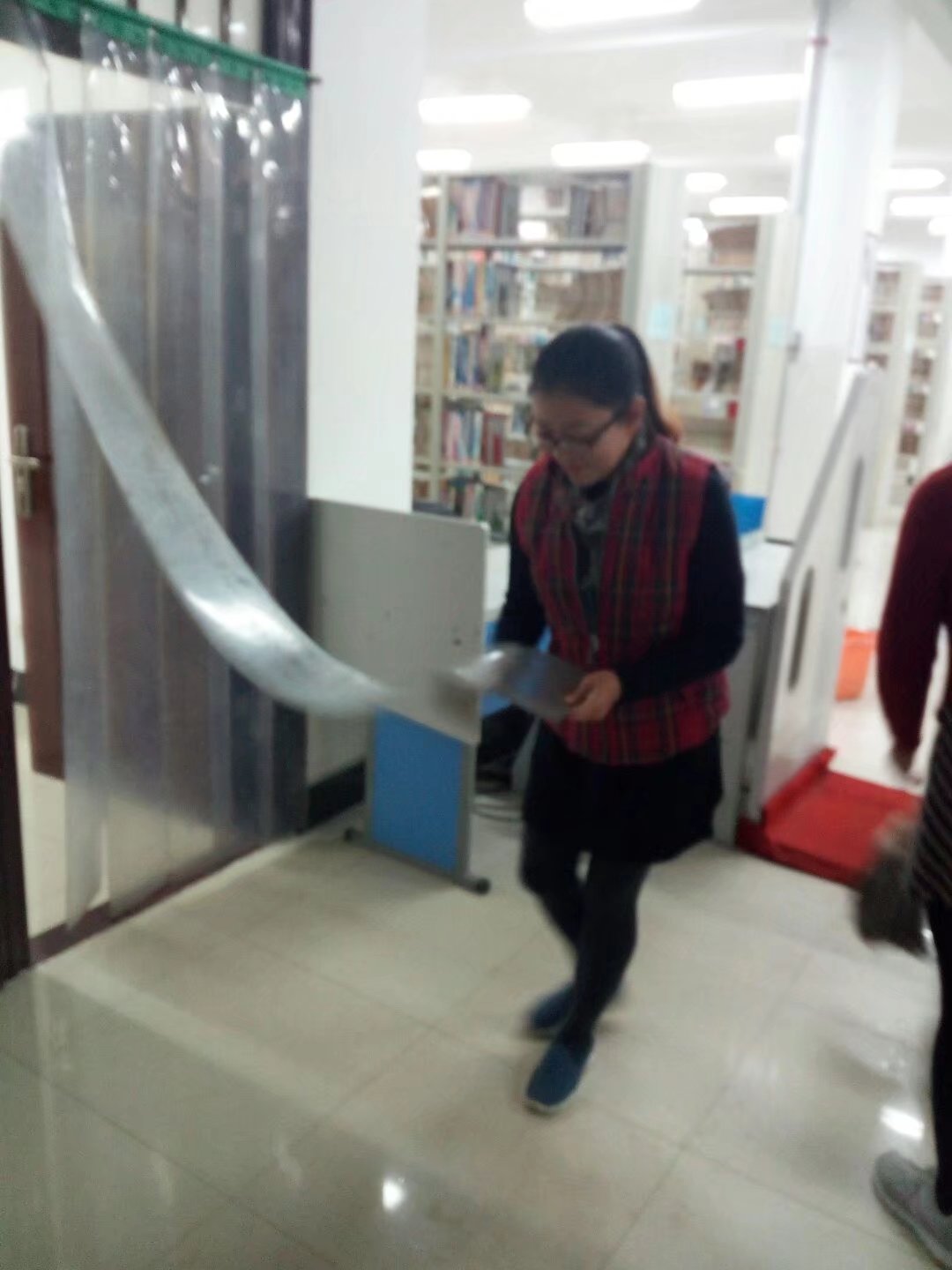 为迎接省文明办复验工作,同时给广大师生创造一个良好的借阅环境,11月20日下午,图书馆全体人员结合学校提出的卫生要求,对办公区及书库进行了一番彻底清扫。在近三个小时的劳动中大家干的热火朝天,窗户、门、办公用具、地板,从上到下,从里到外,不放过任何一个死角。看着明净的地面、窗台、桌面,焕然一新的房间,大家都会心的笑了。