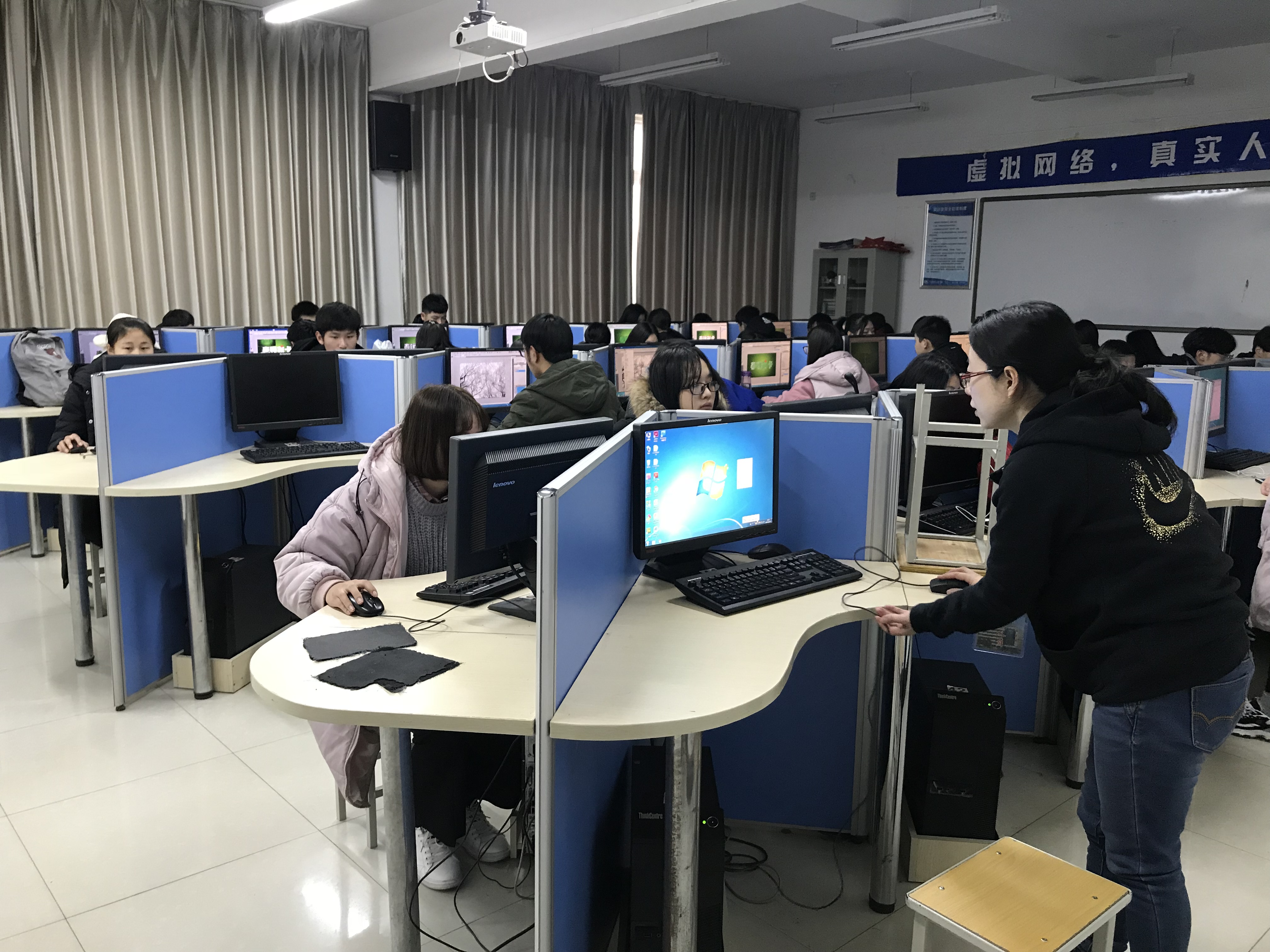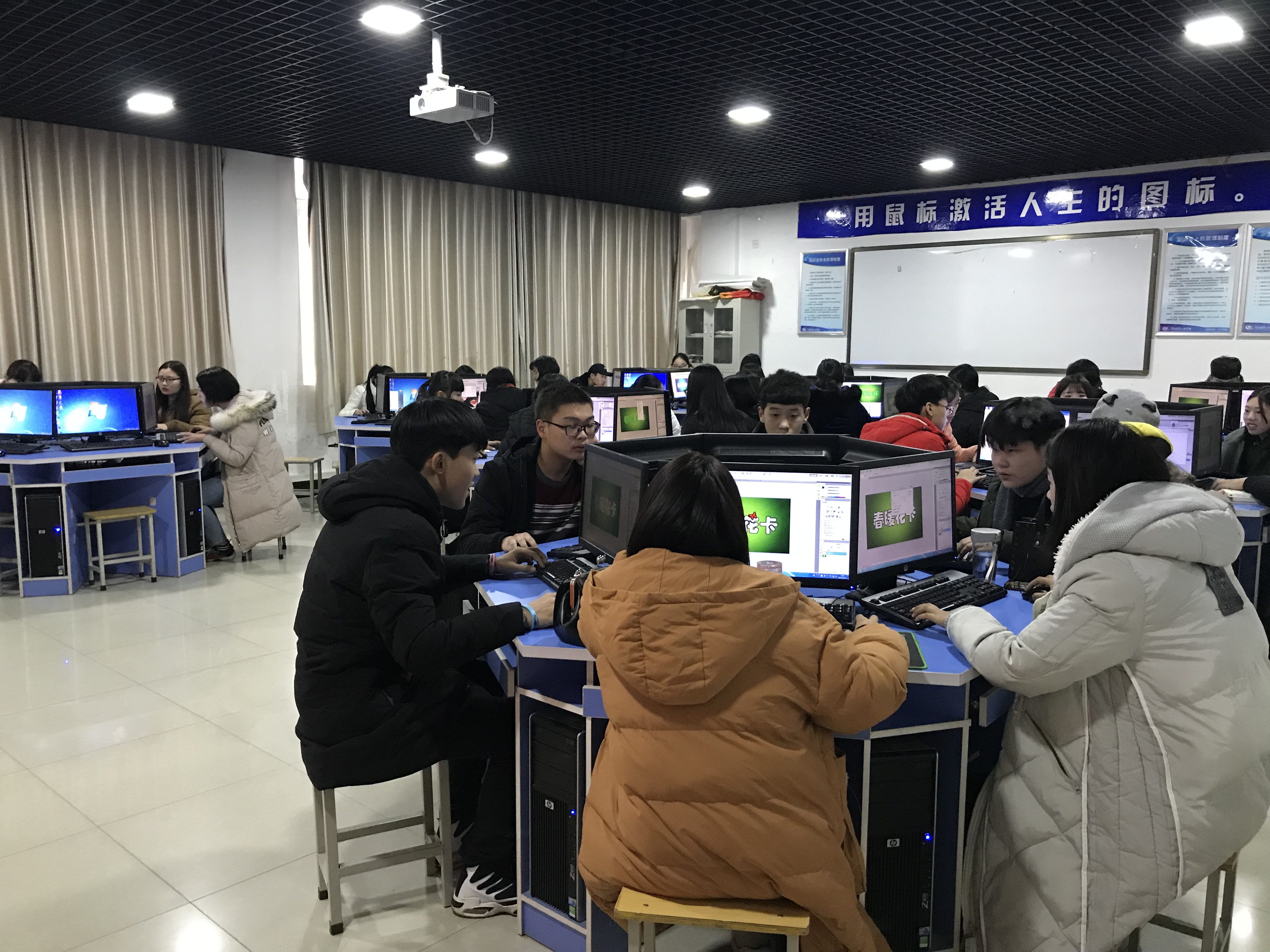 12月12日(本周二)下午15:20-17:00在我系机房开展艺术系2016级的专业课第二课堂活动。我系2016级1.2.3.4.5班全体学生参加了本次第二课堂活动,我系教师全员参与了竞赛的全过程。本次第二课堂活动开展了PS广告设计。通过此次竞赛,激励学生学习兴趣,批改选出优秀作品进行展示与肯定。