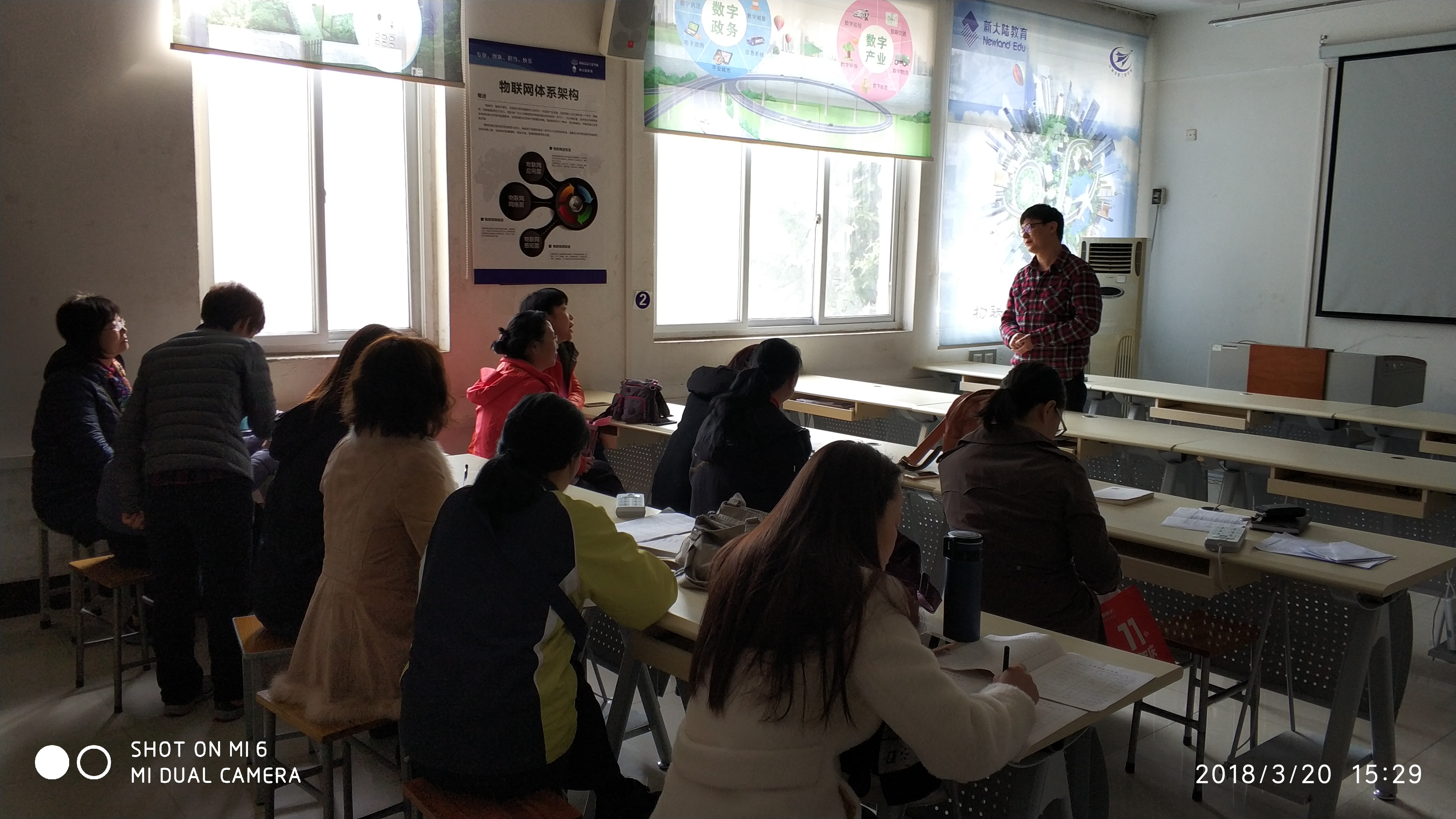 2018年3月20日,我校电子工程系全体教师在实训楼312室召开第三周工作会议,本次会议由胡祎副主任主持,并通报本学期授课计划与任务书查收情况。随后,由郭子川老师带领大家学习了十九大报告中关于职业教育的内容。最后,胡祎副主任对本周工作做了安排,动员大家积极参与本学期优质课评比活动。