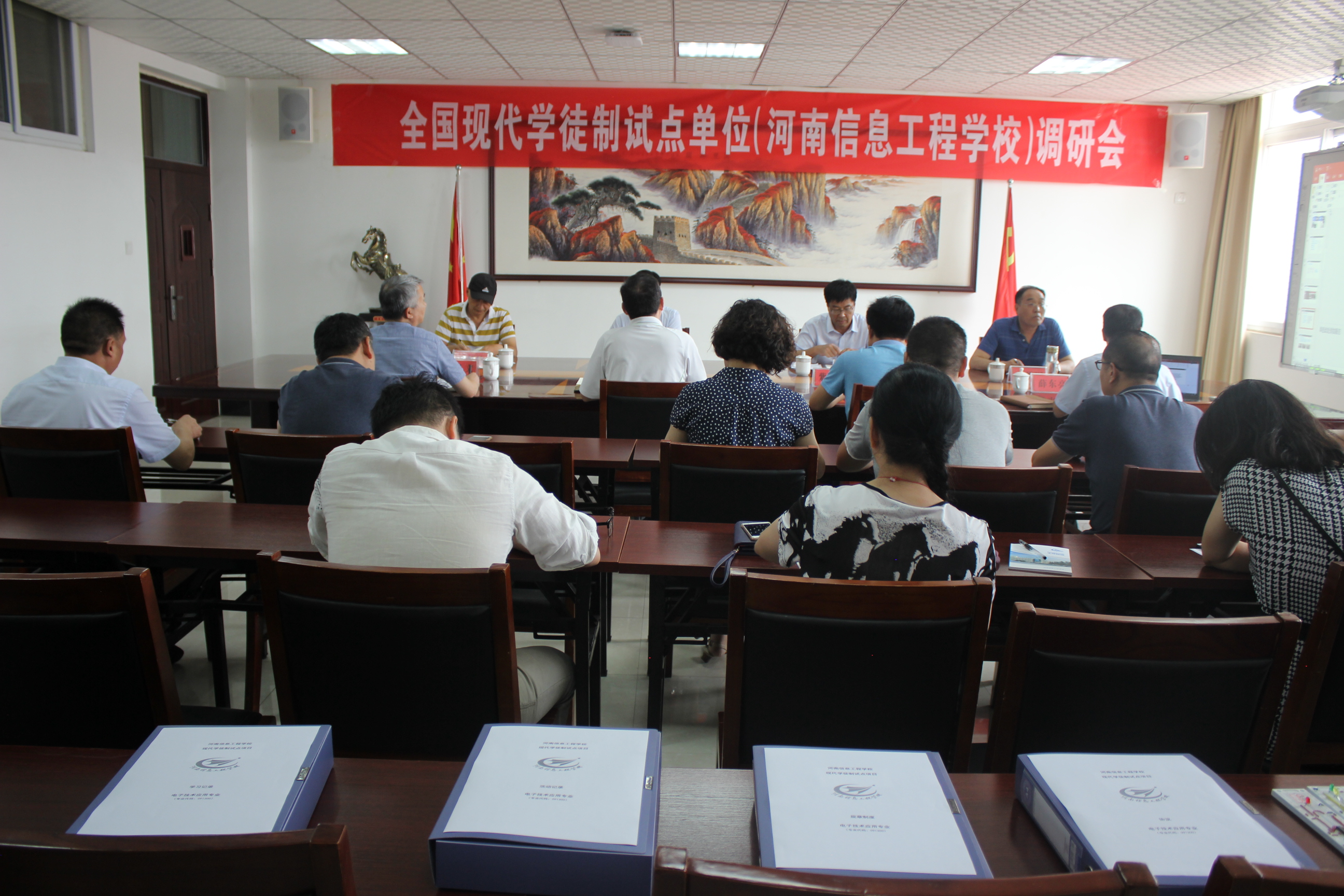 根据《教育部办公厅关于做好2018年度现代学徒制试点工作的通知》(教职成厅函【2018】10号)和《关于开展全国现代学徒制试点单位调研工作的通知》(学徒制专委函【2018】12号)要求,2018年7月27日上午,省教育厅委派了刘 源、贾庆成、王怀钦、朱伟军四位专家组成的调研组,对我校现代学徒制试点工作开展情况进行了现场调研。河南紫光物联科技有限公司代表王留杰,我校聂子明校长、盛兴文副校长、薛东亮副校长、人事处王晓辉处长、招生就业处李中显主任、教务处马书群主任、规划发展处李必丹副主任、学生处杨云飞主任、电子工程系史娟芬主任以及学徒制试点班老师代表出席了本次调研会议。