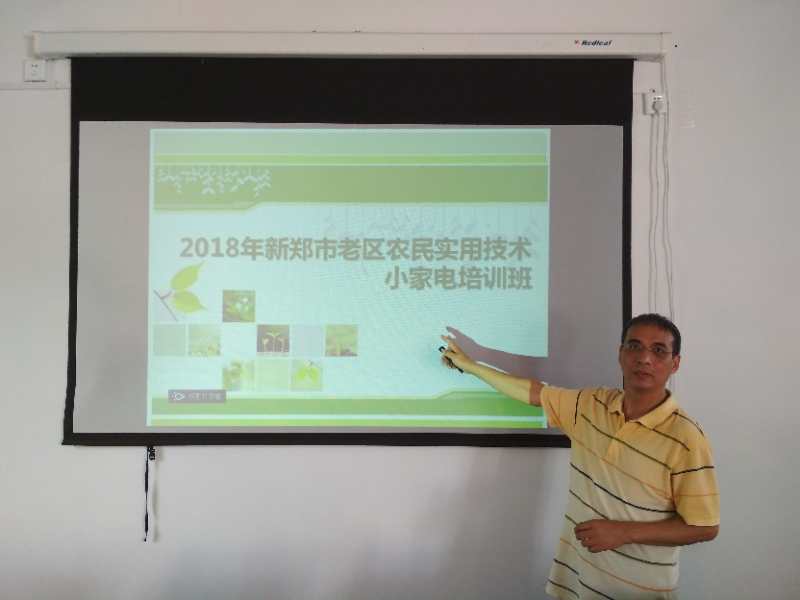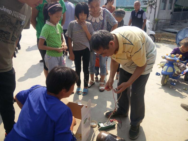 2018年9月10日 我校电子工程系老师陈子聪深入新郑市老区开展“老区农民实用技术---小家电培训”活动。活动分为两个部分:首先是讲座活动,由陈子聪老师担任主讲,向村民讲解农村安全用电、家电日常维护等用电常识;接着,开展家电义务维修活动,集中检查维修村民送来的问题家电。