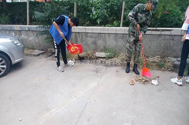 上午9点,在团委相关老师带领下,20名志愿者统一身着我校德育实践周服装,准时来到郑州市花园路茂花交叉路口。大家手持扫帚、铁锹等劳动工具,按照办事处要求,认真清理停车位、墙角等卫生死角,并把垃圾清理到指定位置。
