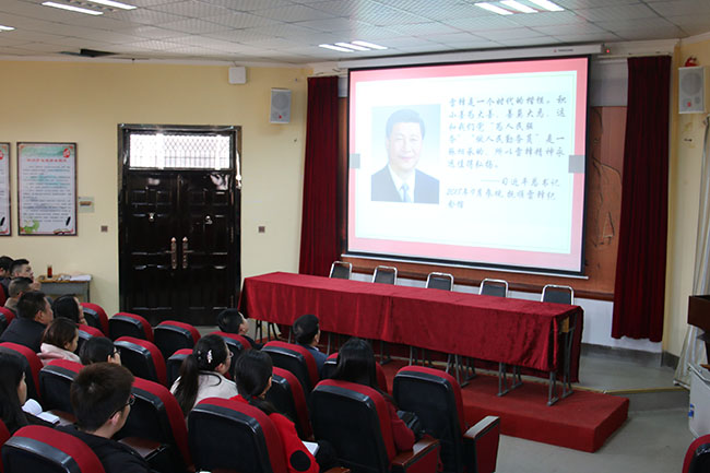 为了使同学们深刻领悟雷锋精神,使雷锋精神薪火相传,2019年3月12日,学生处(团委)组织开展“传承雷锋精神 争做文明学生”专题团课。为了保证教育效果,3月11日下午,学生处(团委)专门给班主任老师安排了公开示范课,宋廷楷副校长亲自听课指导。