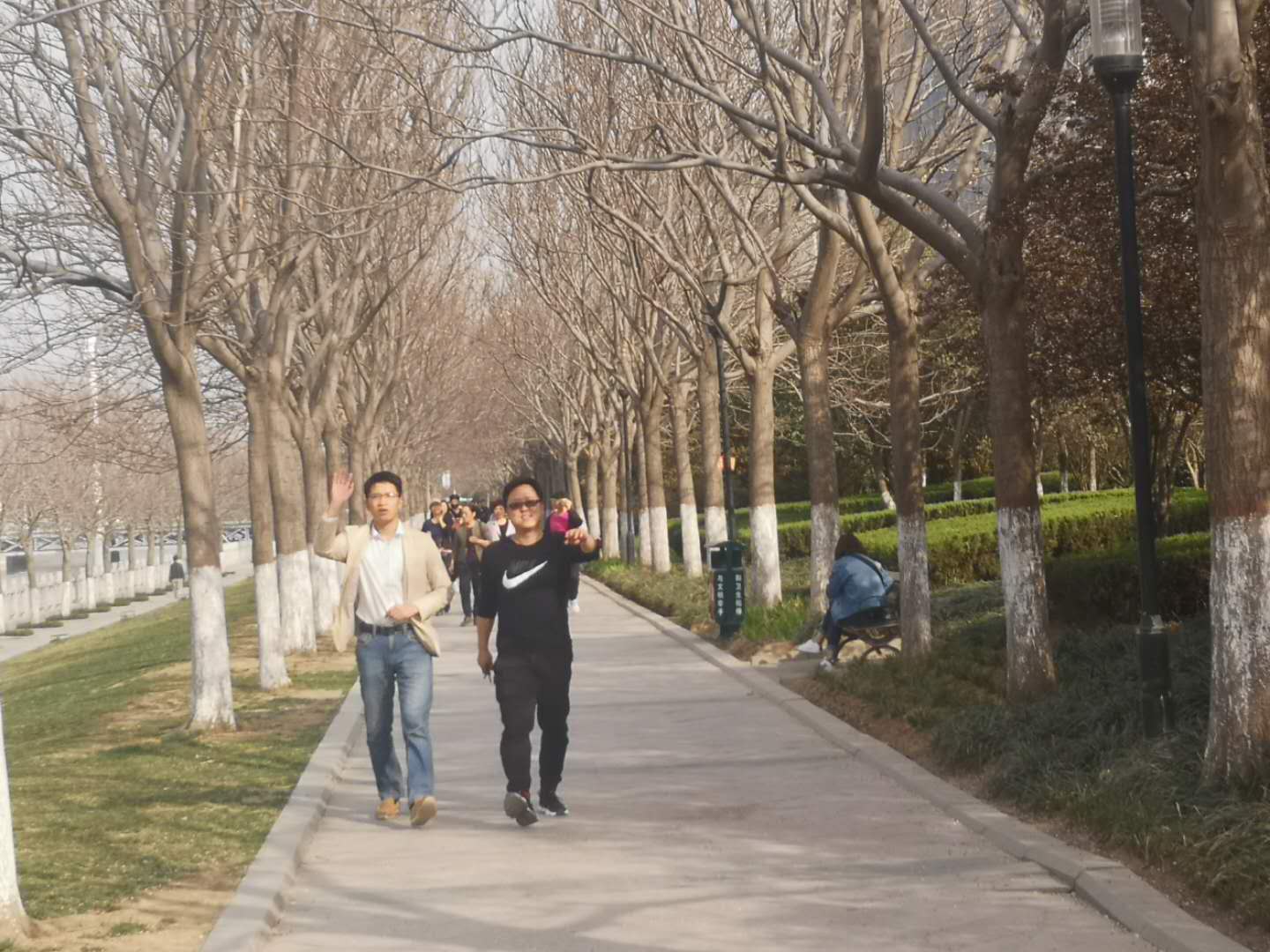 河岸上春光明媚,繁花似锦,迎春花,海棠花,樱花,花海摇曳,银杏树,玉兰树,柳树,树影婆娑,培训中心全体人员精神健硕,快步前行,边走边交流,既锻炼了身体,又交流了思想,还欣赏了春色,一举多得,保证了以后工作的顺利开展。
