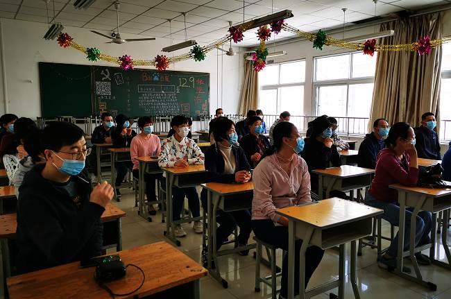 教务处组织全体任课教师对开学后学生上课及实训进行演练。副校长薛东亮对这次演练的目的和意义做了重点说明,并要求参加教师认真对待,积极为学校复学做准备。在教学楼和实训楼,教师对进入教学楼的整个过程进行了演练。课间休息时,要求学生保持适当距离,不要聚集。下课后,由任课老师带领学生出教学楼并交给值班班主任。上课过程中,如出现异常情况,班级保持原地不动,按程序上报医务室、学校防疫办公室、金水区防疫办等,按有关程序处置。