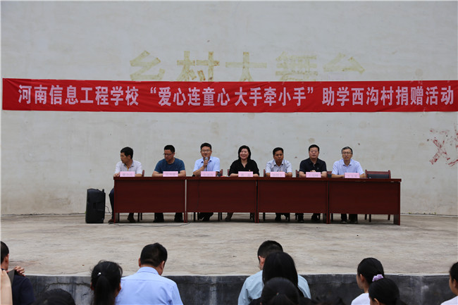 8月8日上午,在汝阳县十八盘乡西沟村综合文化服务中心,河南信息工程学校“爱心连童心 大手牵小手”助学汝阳县西沟村捐赠活动正式举行。我校领导班子、校友代表及教师代表参加了捐赠仪式。仪式由我校挂职领导常涌涛书记主持。