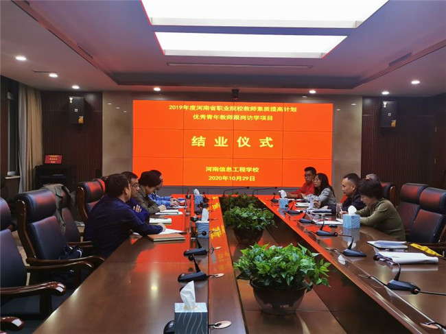 2020年10 月 29 日,河南省职业院校教师素质提高计划优秀青年教师跟岗访学项目结业典礼在我校顺利举行。我校副校长薛东亮(计算机网络技术专业指导老师)、电子工程系主任史娟芬(电子技术应用专业指导老师)、艺术设计系主任李强(动漫游戏专业指导老师)、计算机技术系主任门雅范(计算机网络技术专业指导老师)、规划发展处贾海朝老师(机电技术应用专业指导老师)及五位跟岗访学老师参加了本次结业典礼,结业典礼由史娟芬主任主持。
