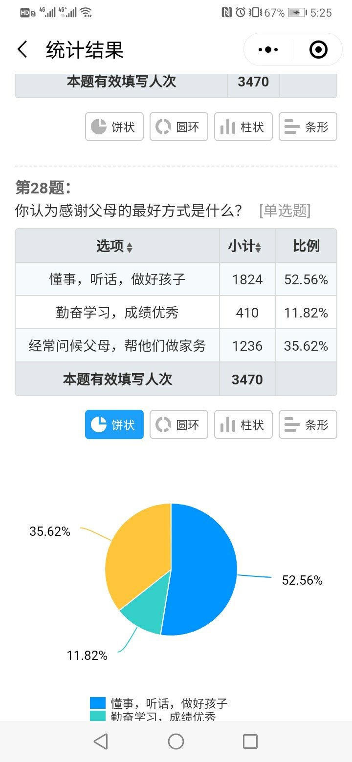 为了及时了解学生目前感恩状况,切实做好感恩教育工作,学生出开展了感恩教育活动。此次活动的开展采用问卷调查的形式进行,同学们利用手机就可以完成。