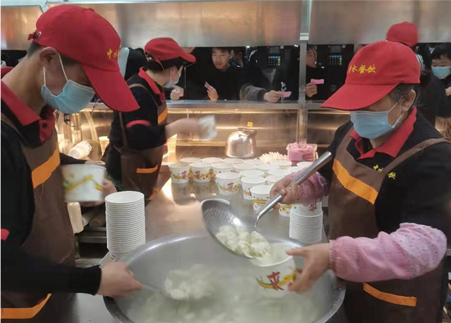 本部食堂开放四个窗口发放饺子