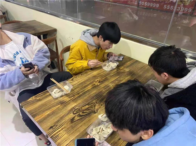 本部学生在食堂吃饺子