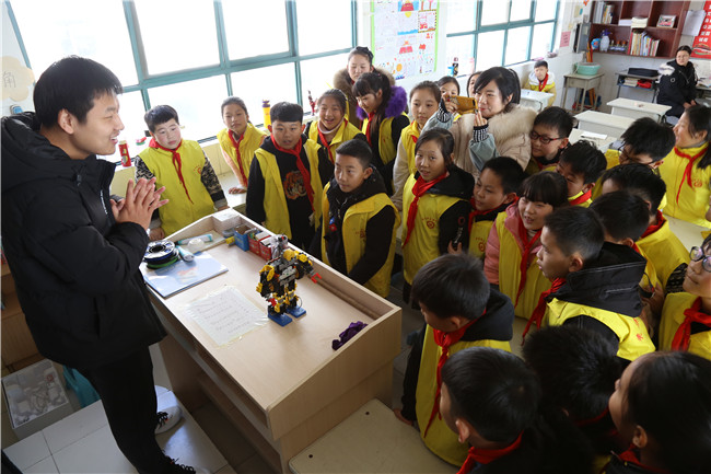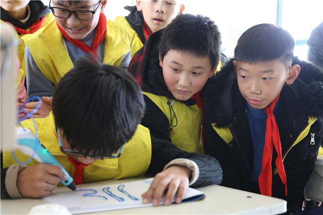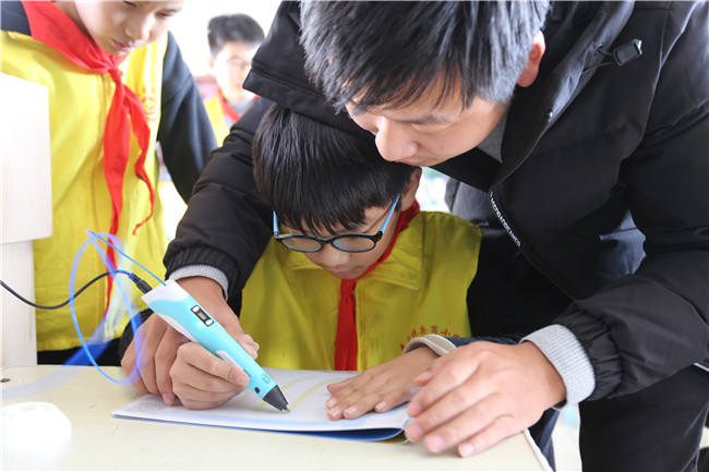 我校电子工程系教师为来集镇岳岗小学的学生带来了机器人编程展示、3D打印笔绘画教学等生动有趣的课程。学生们的眼睛里充满了对知识的渴望,上课期间一刻不停地关注着机器人的一举一动,时而惊讶得张大了嘴巴,时而激动得拍手叫好。在学习使用3D打印笔的过程中,学生们积极踊跃,把老师团团围住,纷纷举手表示要进行练习。
