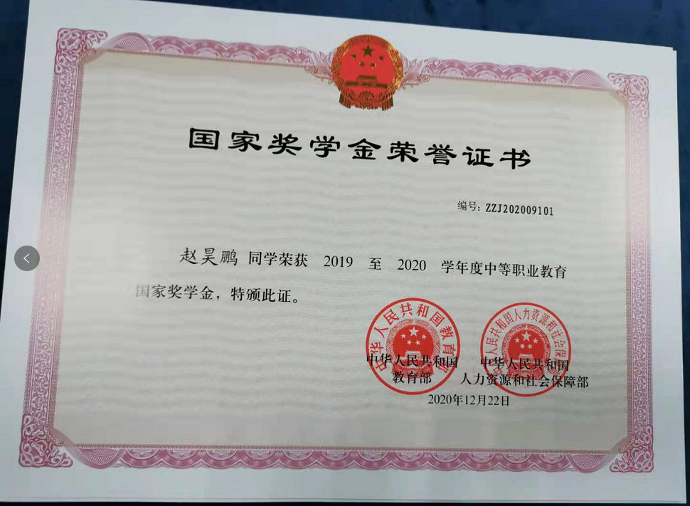 他是电子技术应用18-2班学生叫赵昊鹏。自2018年9月新生入学以来,思想上积极要求进步,学习上刻苦认真,生活上勤俭节约,并不断的以高标准要求自己,在进校的两年时间里他在各方面都取得了不错的成绩,成为了一名品学兼优、全面发展的中职生。
