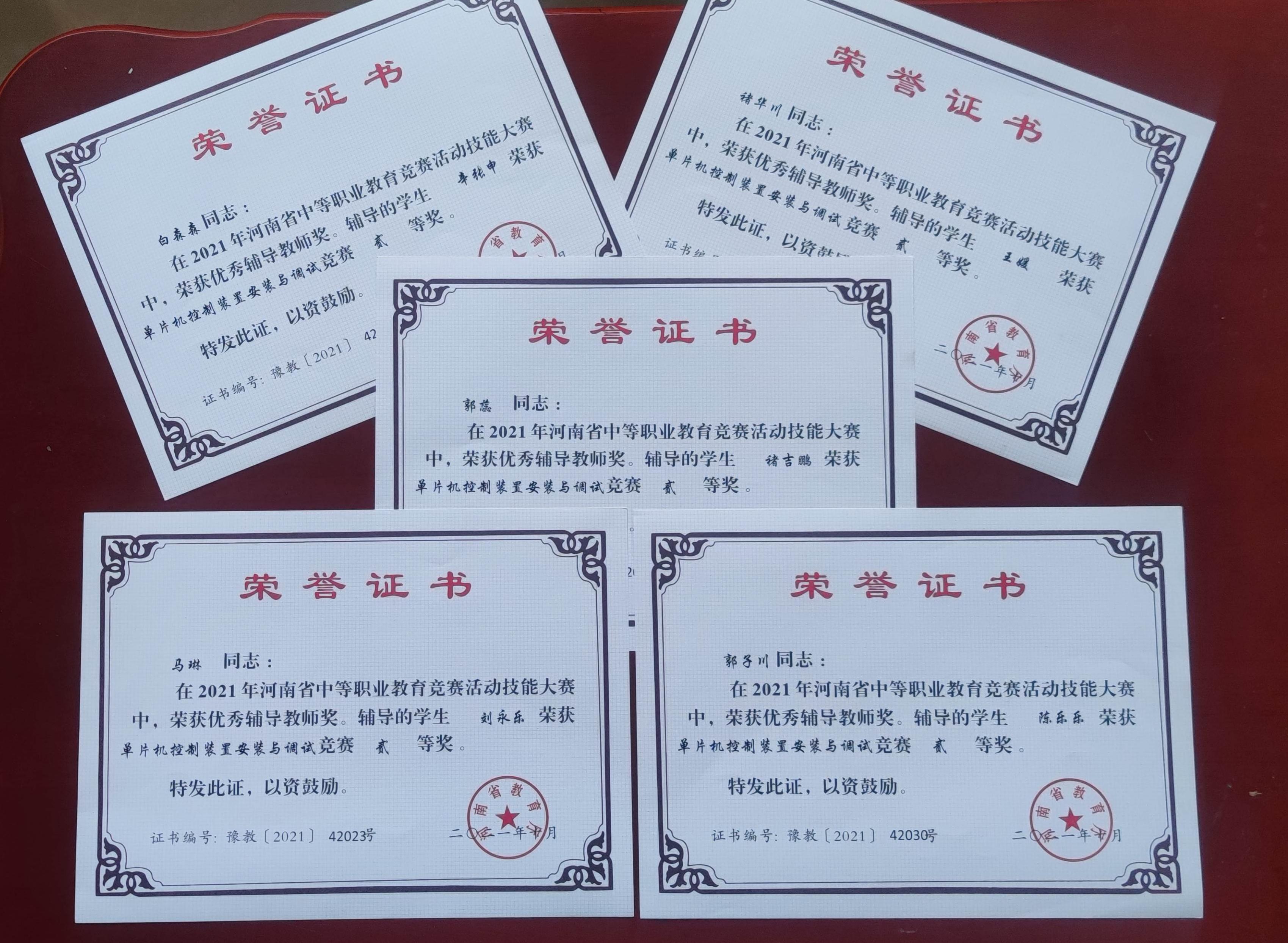 2021年10月22日-24日,2021年河南省中等职业教育技能大赛单片机控制装置安装与调试赛项在河南经济管理学校举办,我校电子工程系五名学生表现优异,19级学生褚吉鹏、刘永乐,20级学生王媛、辛张申、陈乐乐获得二等奖。