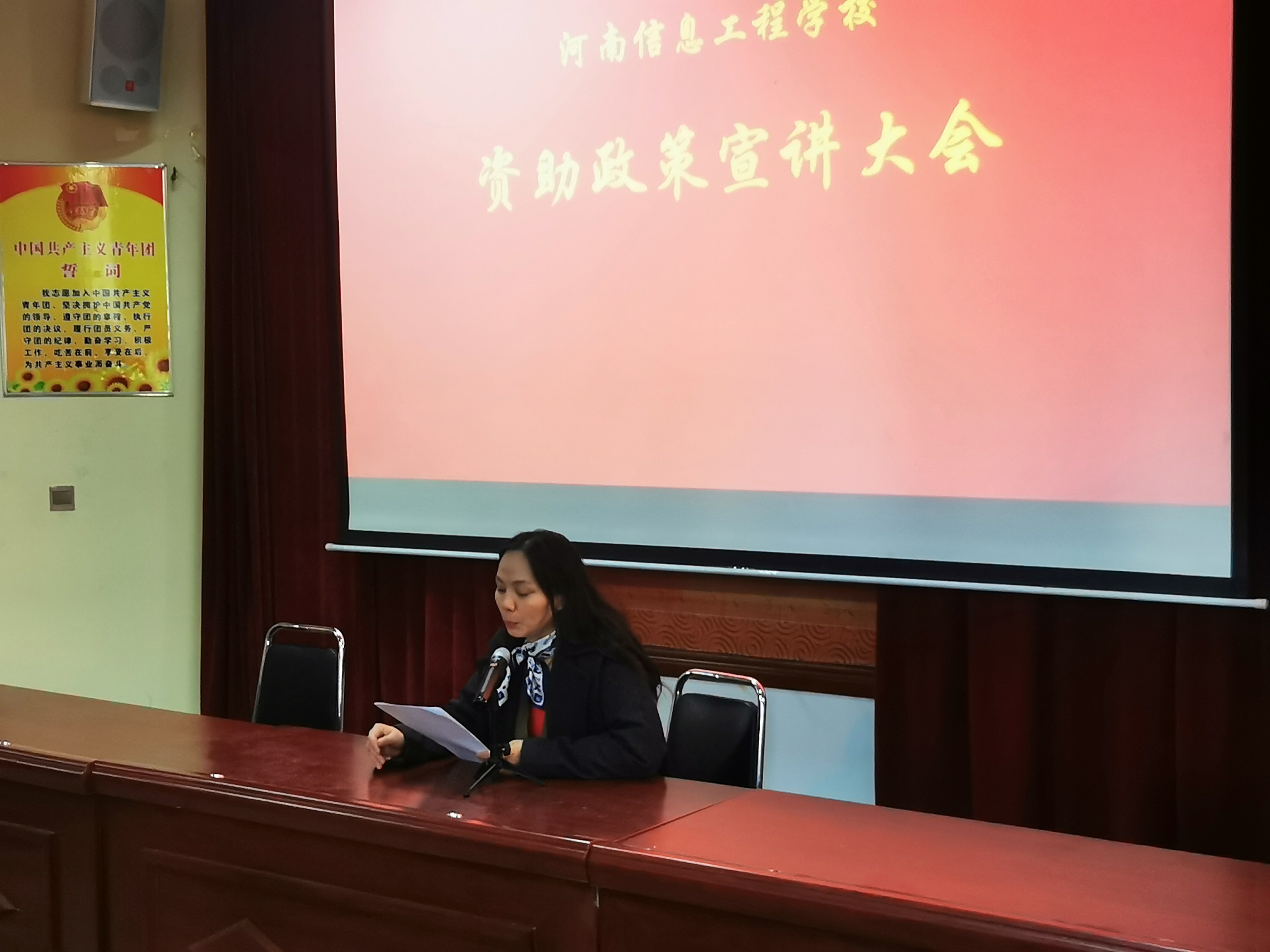 学生处主管学生资助工作的张新荣老师,向与会同学重点介绍了有关教育资助政策、资助标准等内容,让同学们又一次清楚地明白,全面实施建档立卡贫困家庭学生保障和资助政策是党和政府推进教育脱贫攻坚、阻断贫困代际传递的重要举措。同时对学生进行了“感恩、励志教育”,让孩子们明白党和国家“不让一名学生因家庭经济困难而失学”的庄重承诺。并对我校制定的国家助学金评定方案和家庭经济困难学生认定方案进行了解读。