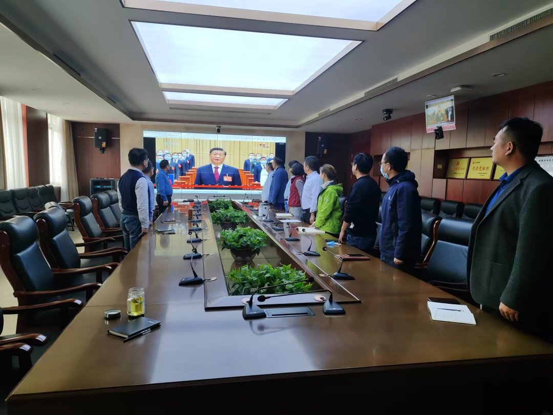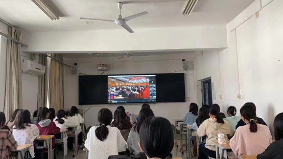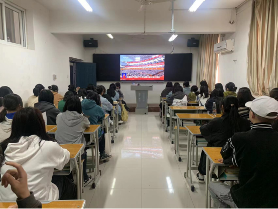我校组织在校师生4300余人集中收看党的二十大开幕会盛况。9点45分,各班同学已经静静等待在教室里,学生处通过腾讯会议的形式,向同学们直播开幕会盛况,各班主任来到教室,陪同学们一起聆听习总书记报告。